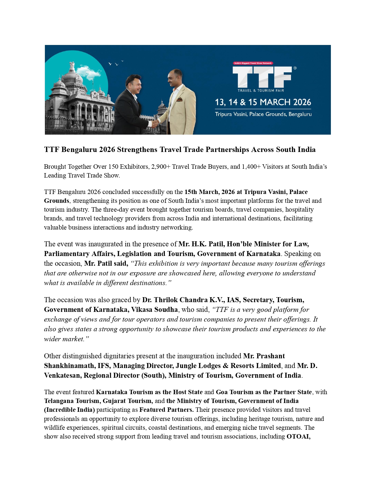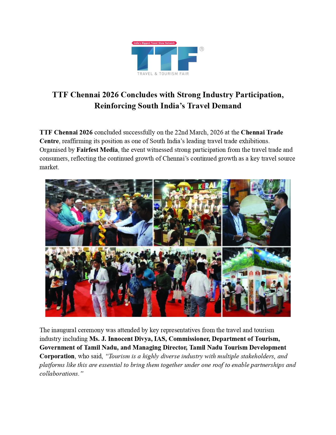 TTF, being India’s largest travel trade show network, provides the platform for media delegates to interact with over 4,000 exhibitors from 100 countries and 60,000+ trade visitors from across India, under one roof. For any journalist or media professional seeking to cover the travel industry, TTF is the place to be.